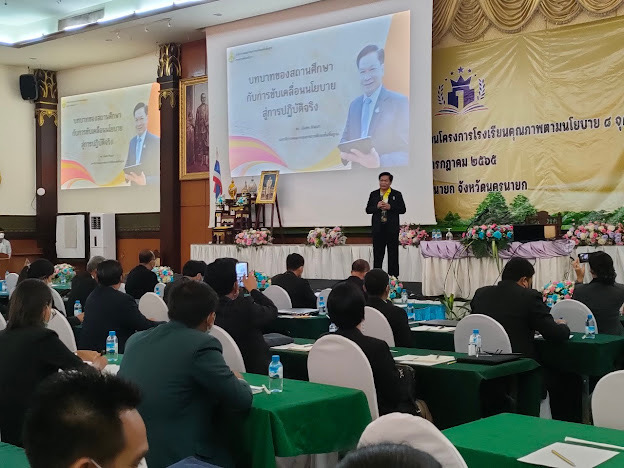 นางสาวขวัญรัตน์ นาสุริวงศ์ รองผู้อำนวยการกลุ่มบริหารวิชาการ เข้าร่วมประชุมเชิงปฏิบัติการสร้างความเข้าใจการขับเคลื่อนโครงการ โรงเรียนคุณภาพ ตามนโยบาย 8 จุดเน้น ระหว่างวันที่ 9-11กรกฎาคม 2565 ณโรงแรมสีดารีสอร์ท นครนายก โดยว่าที่ร้อยตรีธนุ วงษ์จินดา รองเลขาธิการคณะกรรมการการศึกษาขั้นพื้นฐาน (กพฐ.) เป็นประธานในพิธีเปิด พร้อมมอบแนวนโยบาย เพื่อเป็นการยกระดับคุณภาพการศึกษา สร้างโอกาสให้นักเรียนเข้าถึงการศึกษาที่มีคุณภาพ สร้างความพร้อมให้โรงเรียนหลักเป็นโรงเรียนที่มีปัจจัยพร้อมในทุกด้าน ได้แก่ มีครูครบชั้น ครบวิชา มีห้องเรียนคุณภาพที่มีสื่อการเรียนการสอนและเทคโนโลยีที่มีประสิทธิภาพ อาคารสถานที่ที่มีมาตรฐานและความปลอดภัย พร้อมรองรับนักเรียนจากโรงเรียนเครือข่ายในการใช้ทรัพยากรร่วมกัน โดยเป็นไปตามความสมัครใจและความพร้อมของโรงเรียน