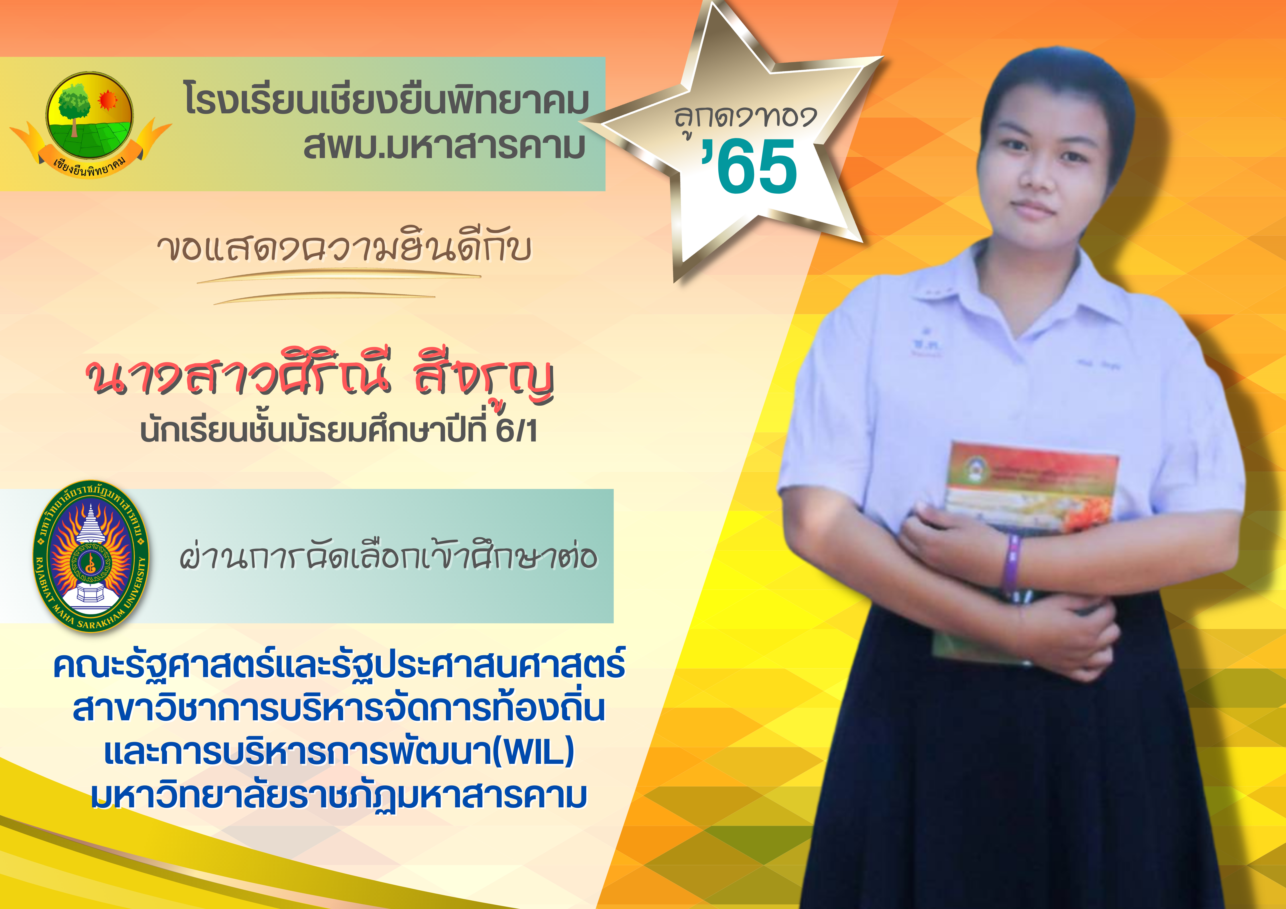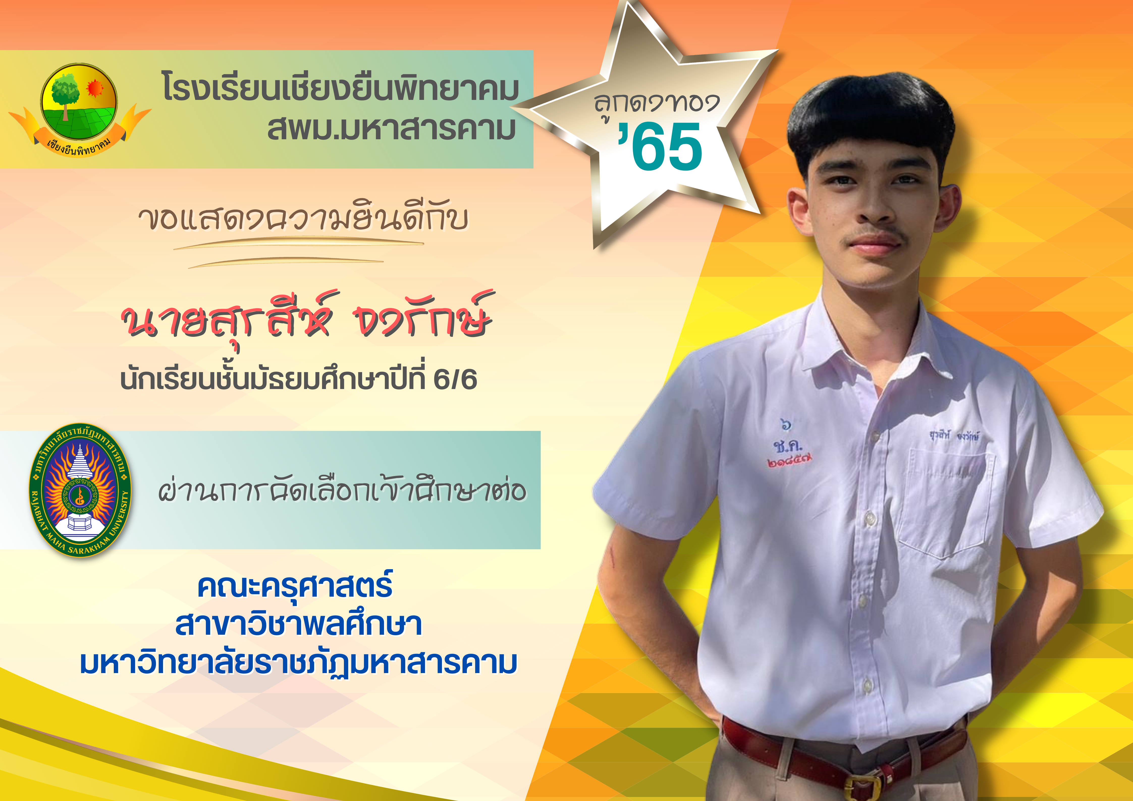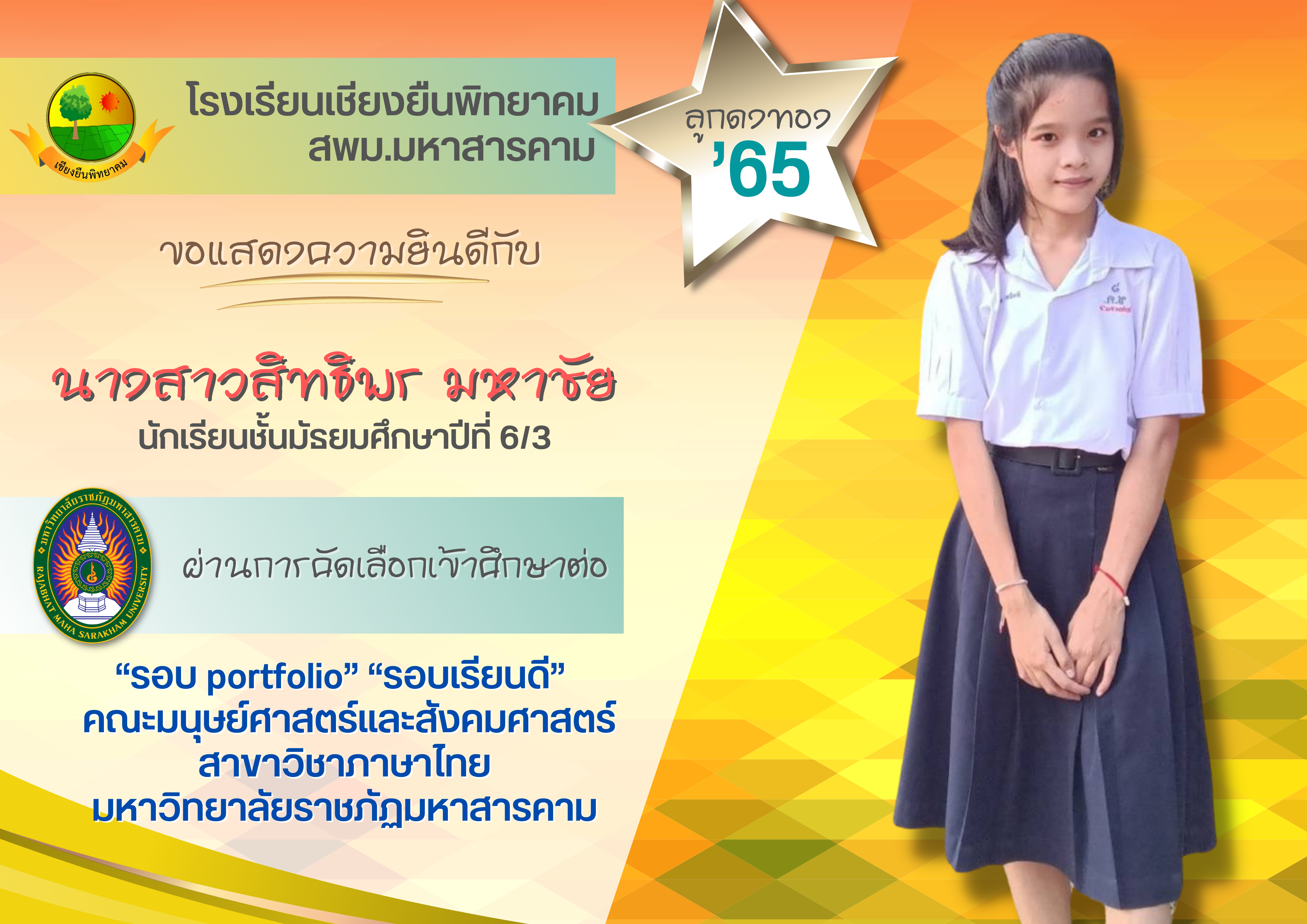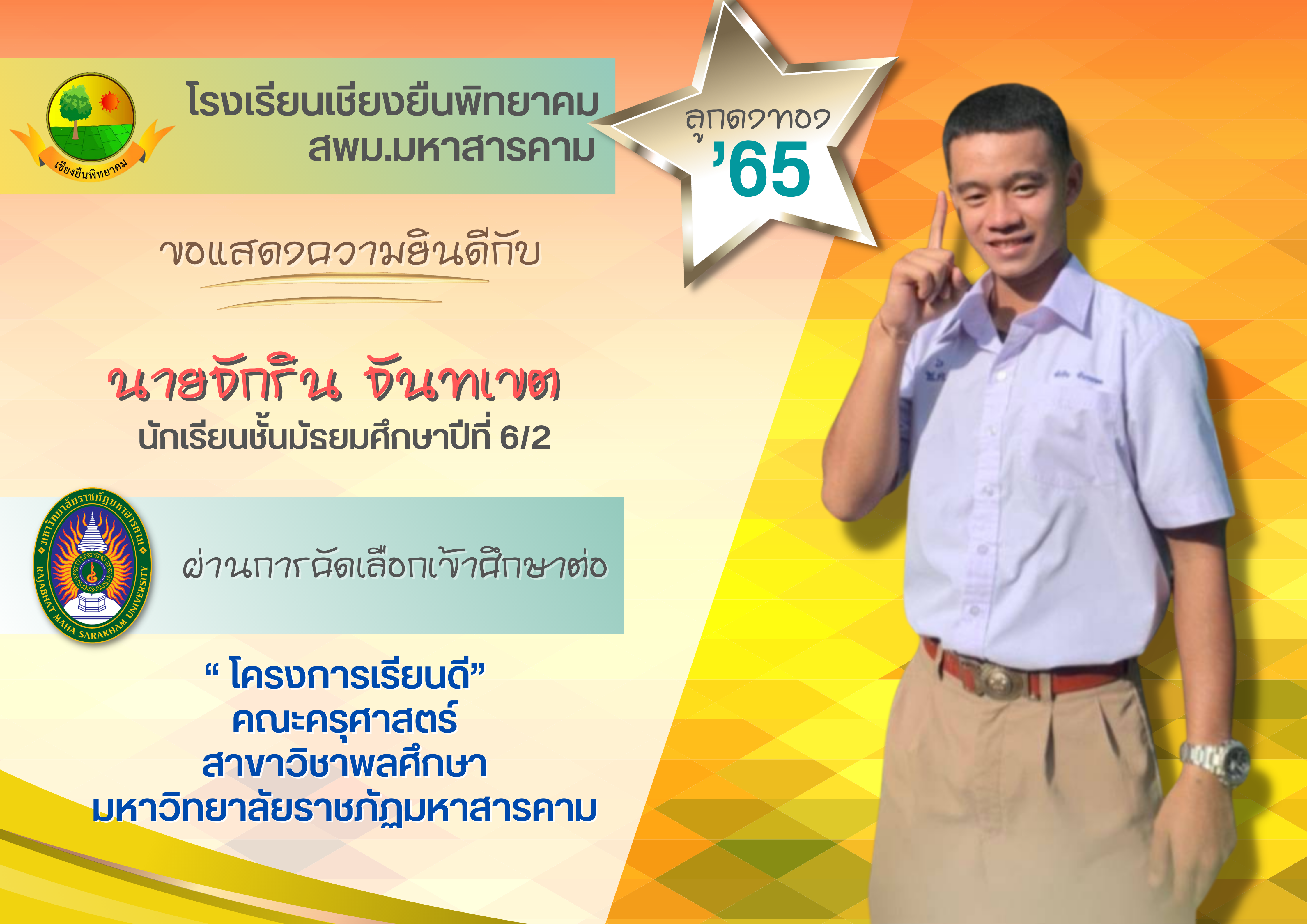 ขอแสดงความยินดี กับนักเรียนชั้นมัธยมศึกษาปีที่ 6 ปีการศึกษา 2565 ที่ผ่านการคัดเลือกเข้าศึกษาต่อในระดับอุดมศึกษา