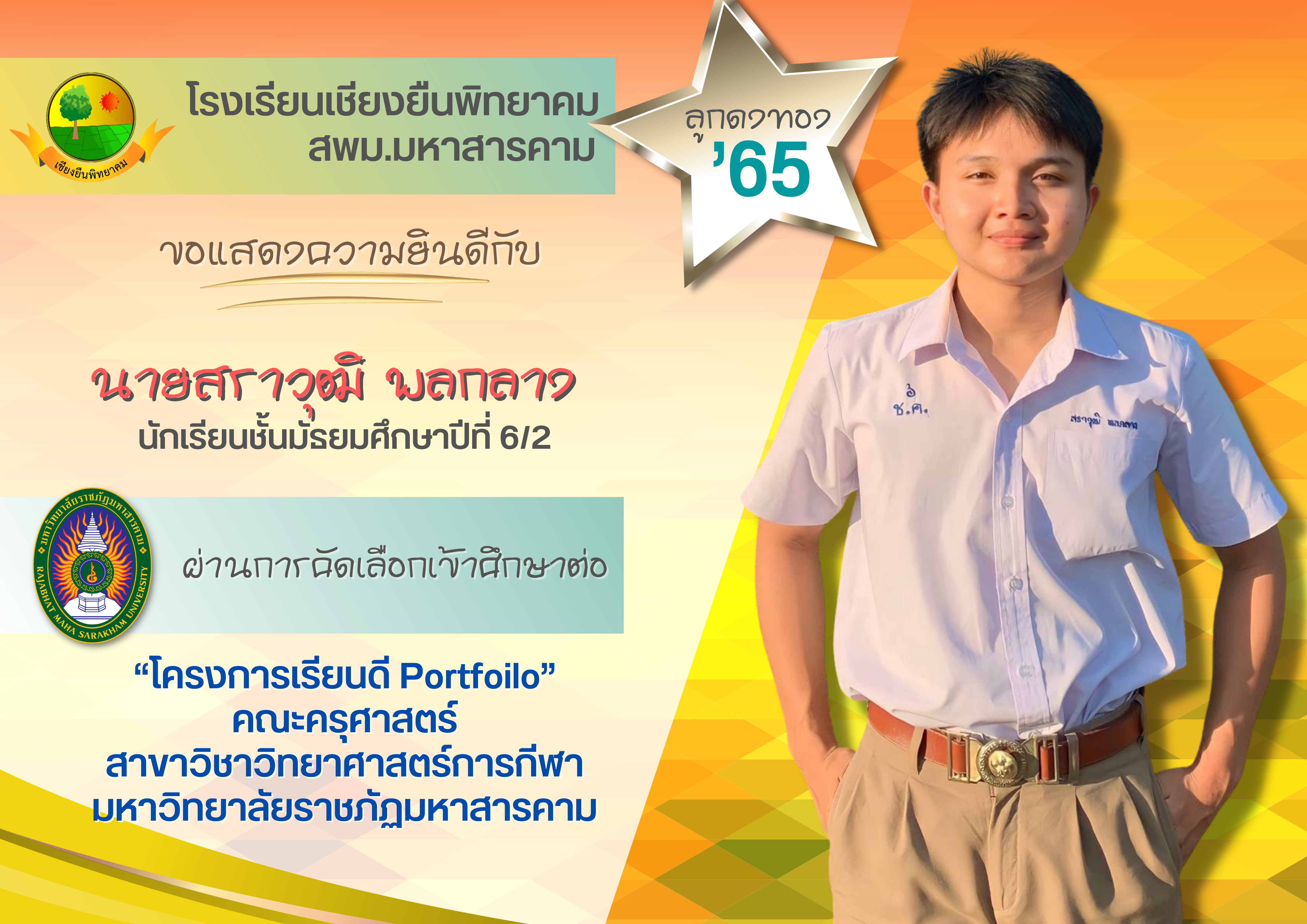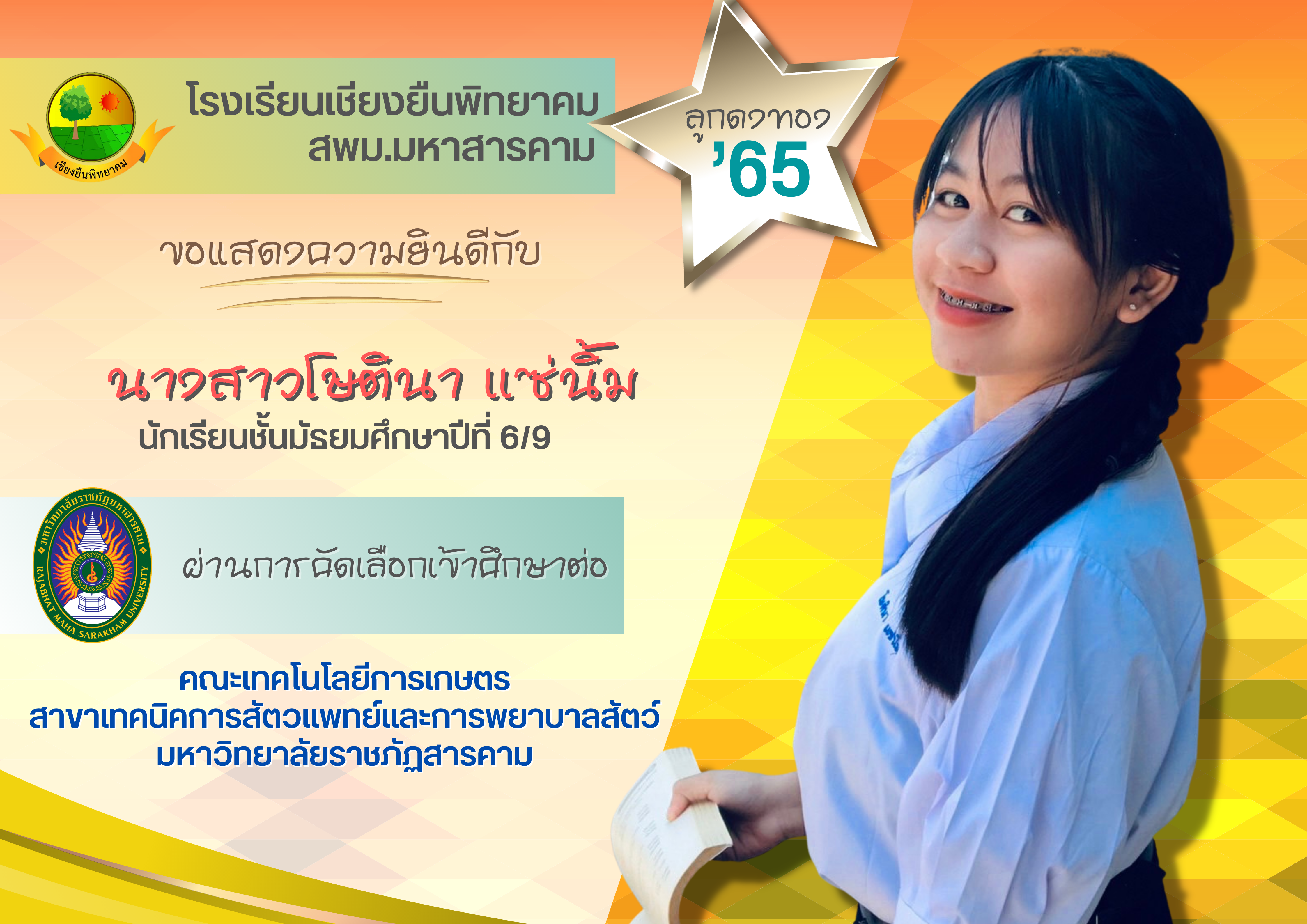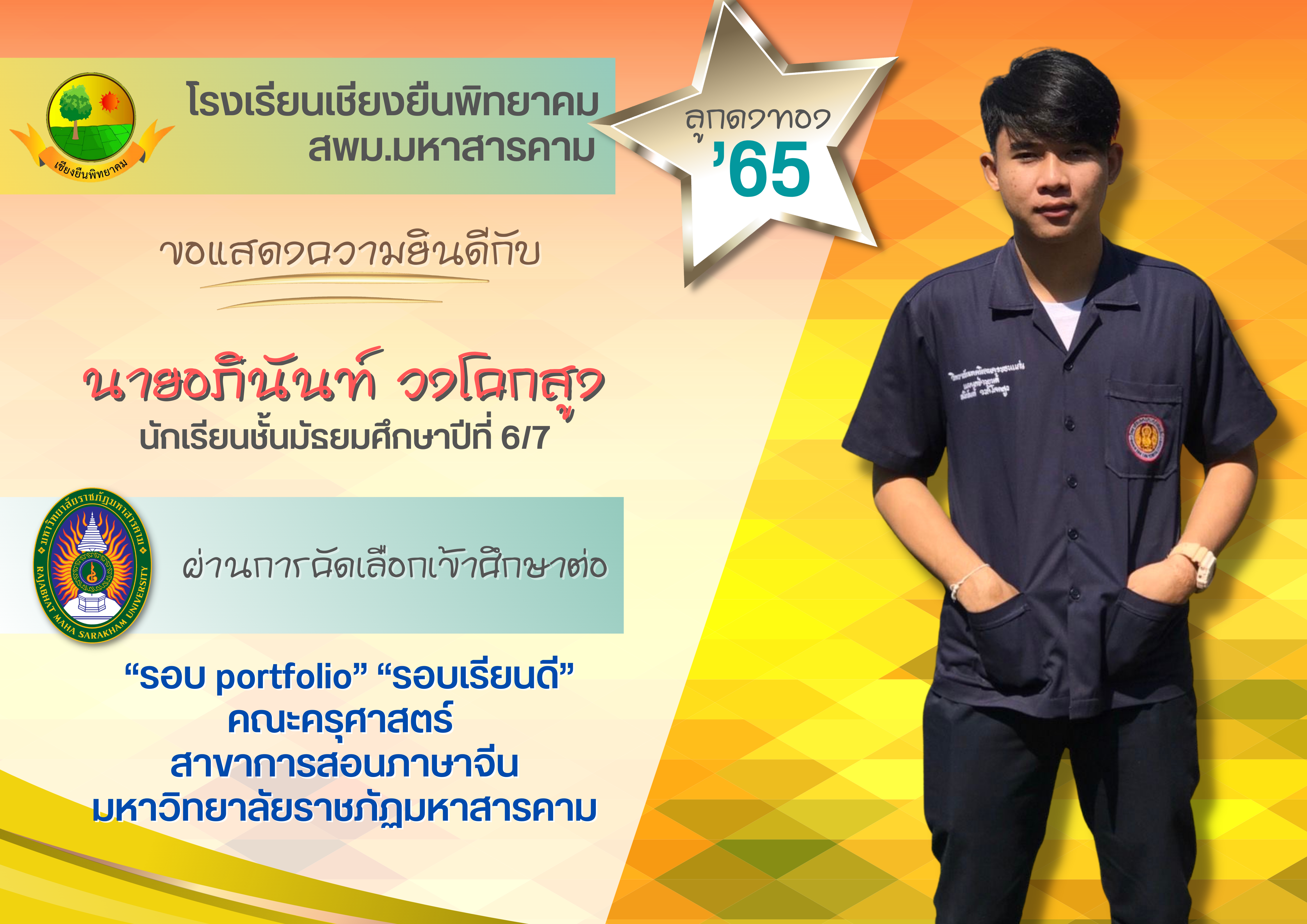 🌟🌟🌟โรงเรียนเชียงยืนพิทยาคม ขอแสดงความยินดี กับนักเรียนชั้นมัธยมศึกษาปีที่ 6 ปีการศึกษา 2565 ที่ผ่านการคัดเลือกเข้าศึกษาต่อในระดับอุดมศึกษา🌟🌟🌟