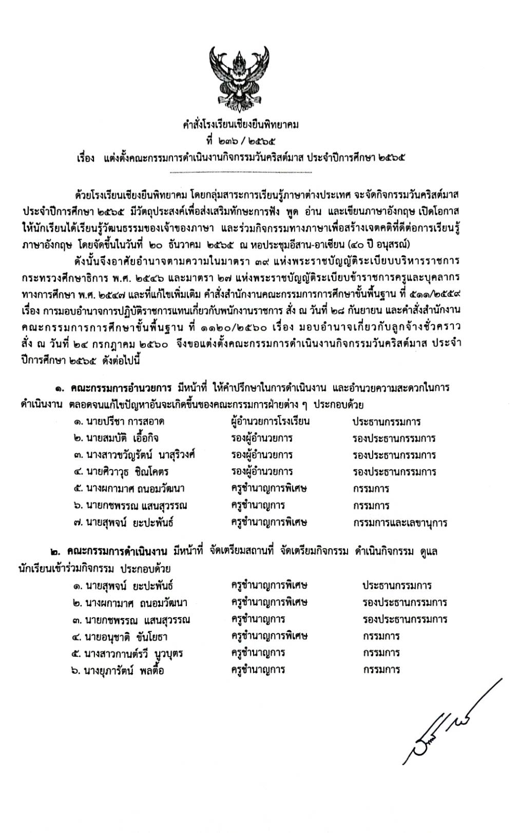 คำสั่งโรงเรียนเชียงยืนพิทยาคมที่ 236/2565 เรื่อง แต่งตั้งคณะกรรมการดำเนินงานกิจกรรมวันคริสต์มาส ประจำปีการศึกษา 2565 Admin 09/12/2022 ข่าว/ประกาศ, คำสั่งกลุ่มบริหารวิชาการ Leave a comment 181 Views