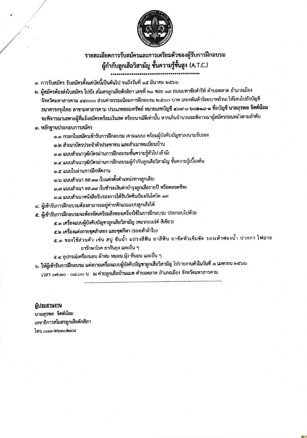 ประชาสัมพันธ์ : โครงการฝึกอบรมผู้กำกับลูกเสือวิสามัญ ชั้นความรู้ชั้นสูง (A.T.C)