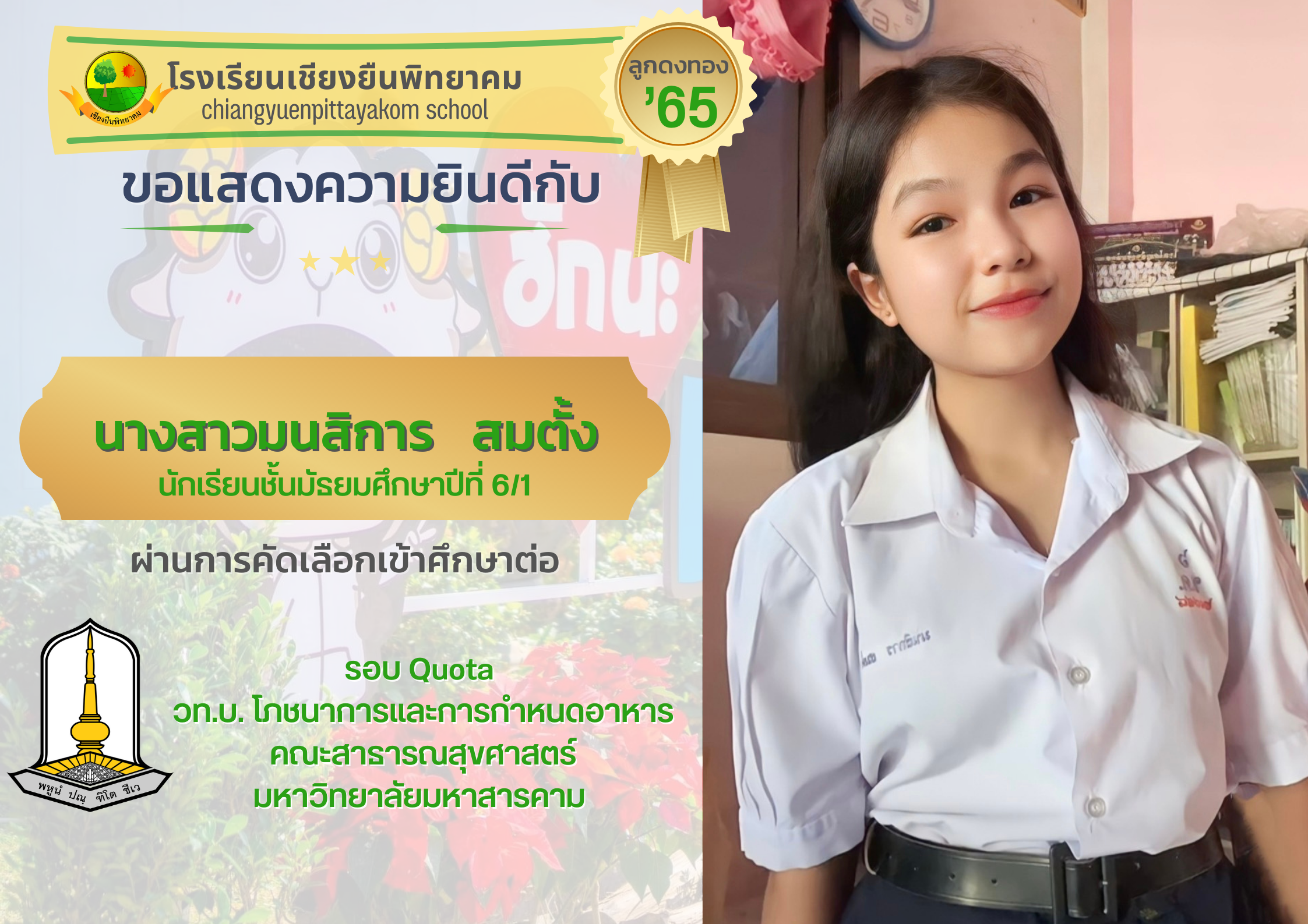 ขอแสดงความยินดี กับนักเรียนชั้นมัธยมศึกษาปีที่ 6 ปีการศึกษา 2565 ที่ผ่านการคัดเลือกเข้าศึกษาต่อในระดับอุดมศึกษา (เพิ่มเติม) Admin 24/06/2023 ข่าว/ประกาศ, ข่าวประชาสัมพันธ์ Leave a comment 526 Views