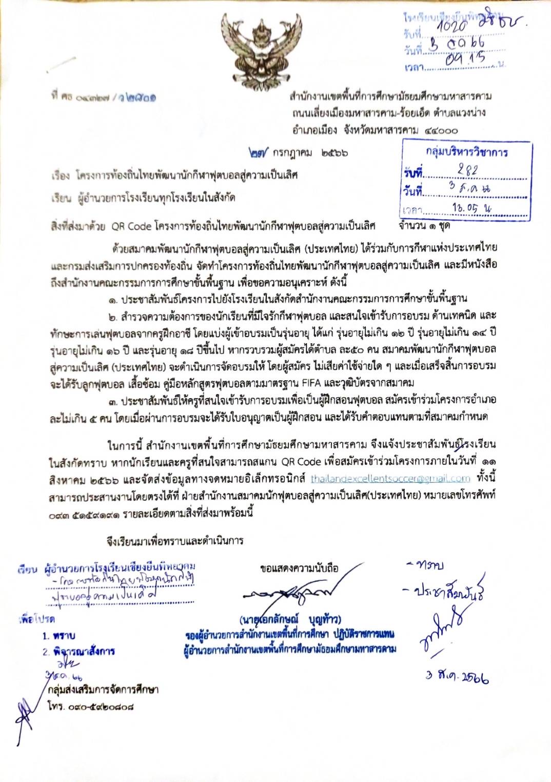 ประชาสัมพันธ์ : เรื่อง โครงการท้องถิ่นไทยพัฒนานักกีฬาฟุตบอลสู่ความเป็นเลิศ