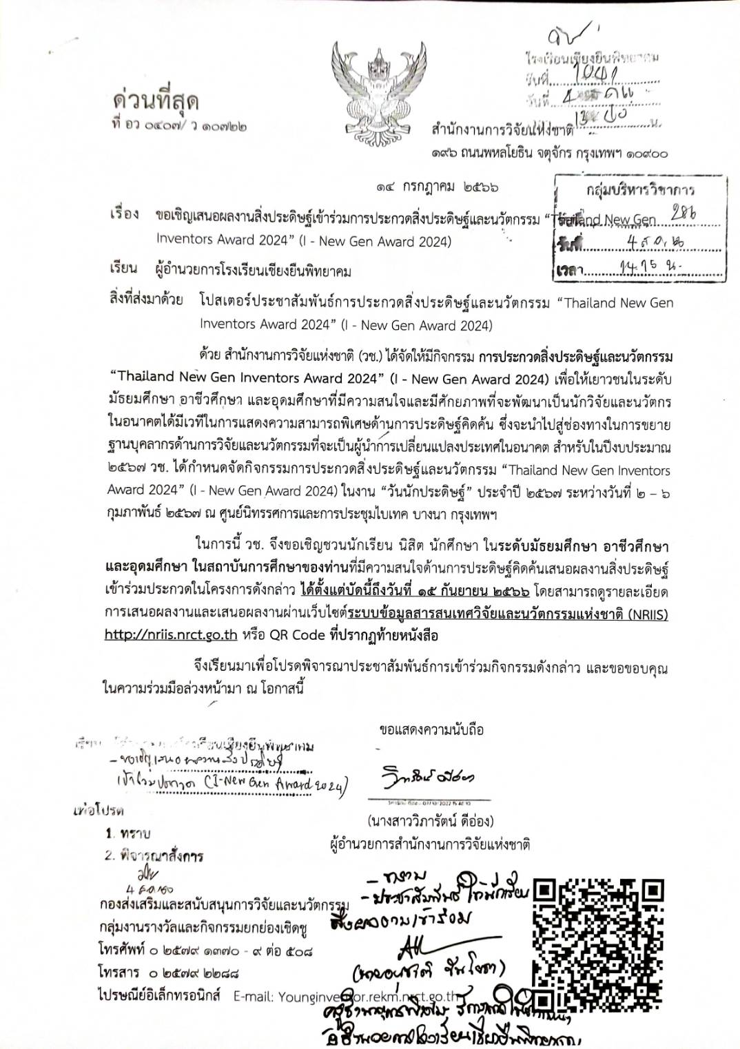 ประชาสัมพันธ์ เรื่อง : ขอเชิญเสนอผลงานสิ่งประดิษฐ์เข้าร่วมการประกวดสิ่งประดิษฐ์และนวัตกรรม “Thailand New Gen Inventors Award 2024” (I-New Gen Award 2024) Admin 07/08/2023 ข่าว/ประกาศ, คำสั่งกลุ่มบริหารวิชาการ Leave a comment 191 Views