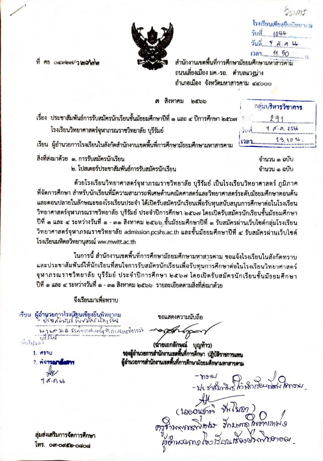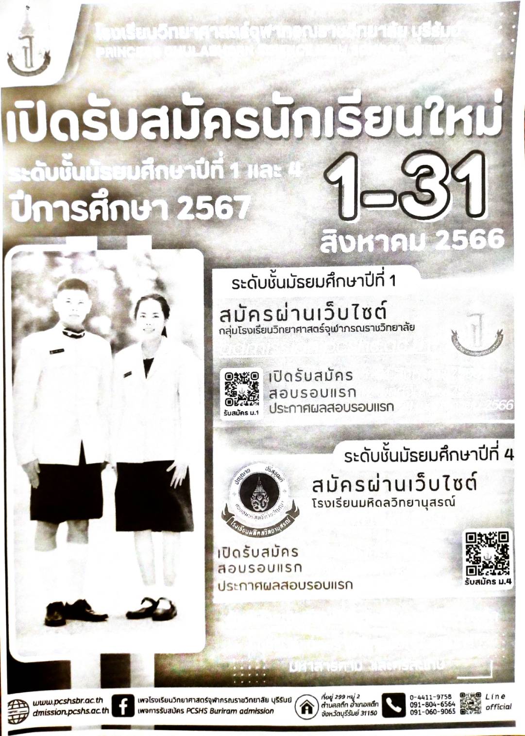 ประชาสัมพันธ์ เรื่อง : ประชาสัมพันธ์การรับสมัครนักเรียนชั้นมัธยมศึกษาปีที่ 1 และ 4 ปีการศึกษา 2567 โรงเรียนวิทยาศาสตร์จุฬาภรณราชวิทยาลัย บุรีรัมย์ Admin 07/08/2023 ข่าว/ประกาศ, คำสั่งกลุ่มบริหารวิชาการ Leave a comment 103 Views