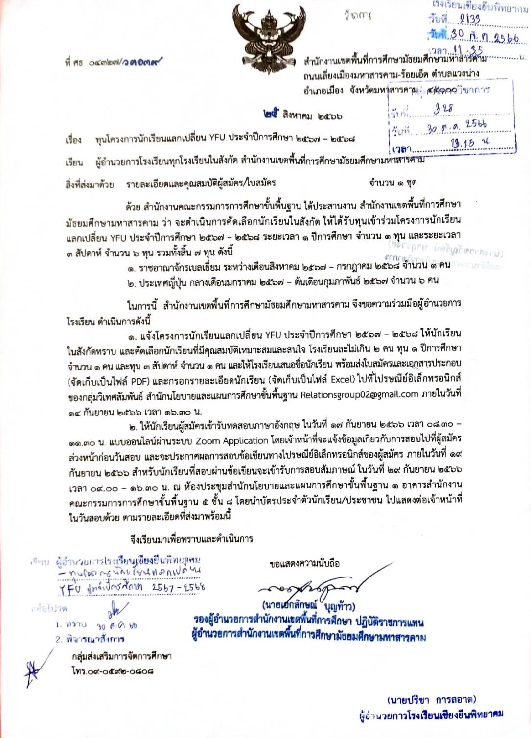 ประชาสัมพันธ์ เรื่อง : ทุนโครงการนักเรียนแลกเปลี่ยน YFU ประจำปีการศึกษา 2567-2568 Admin 31/08/2023 ข่าว/ประกาศ, คำสั่งกลุ่มบริหารวิชาการ Leave a comment 340 Views