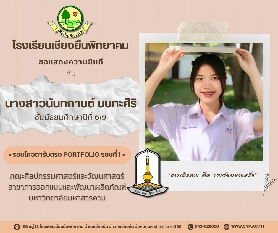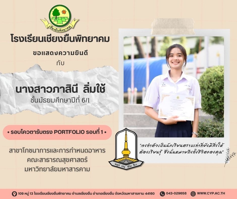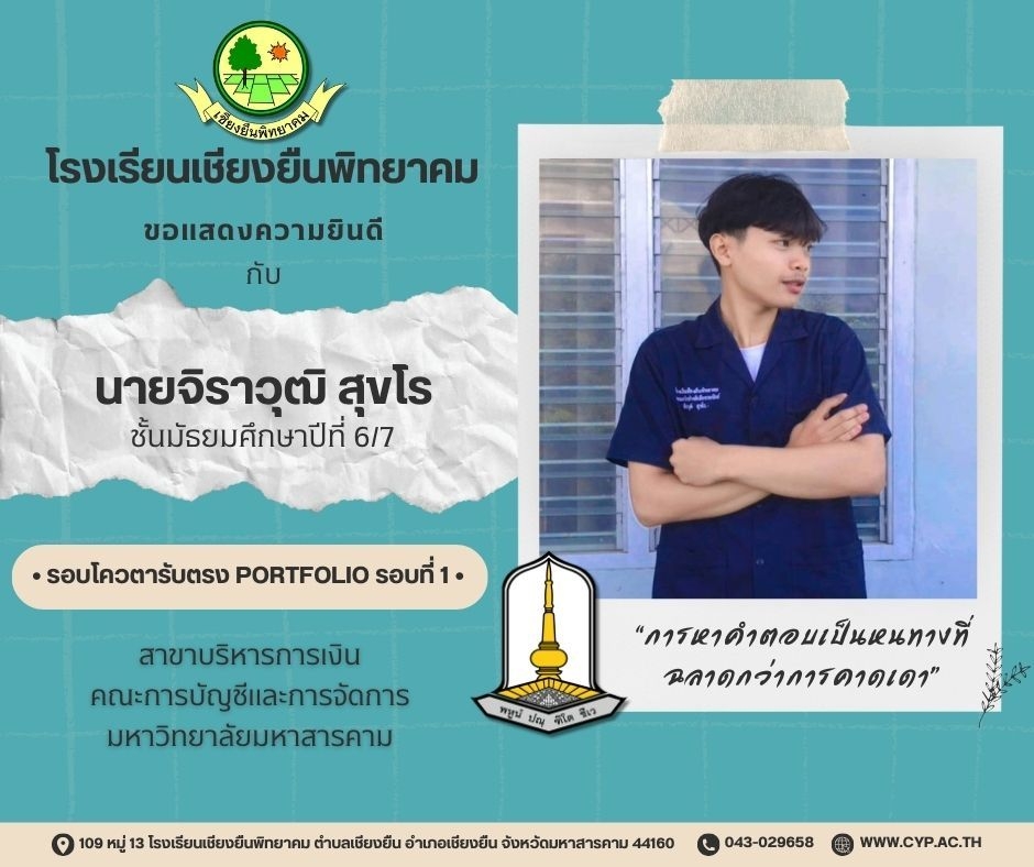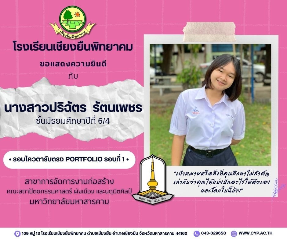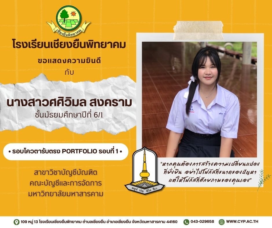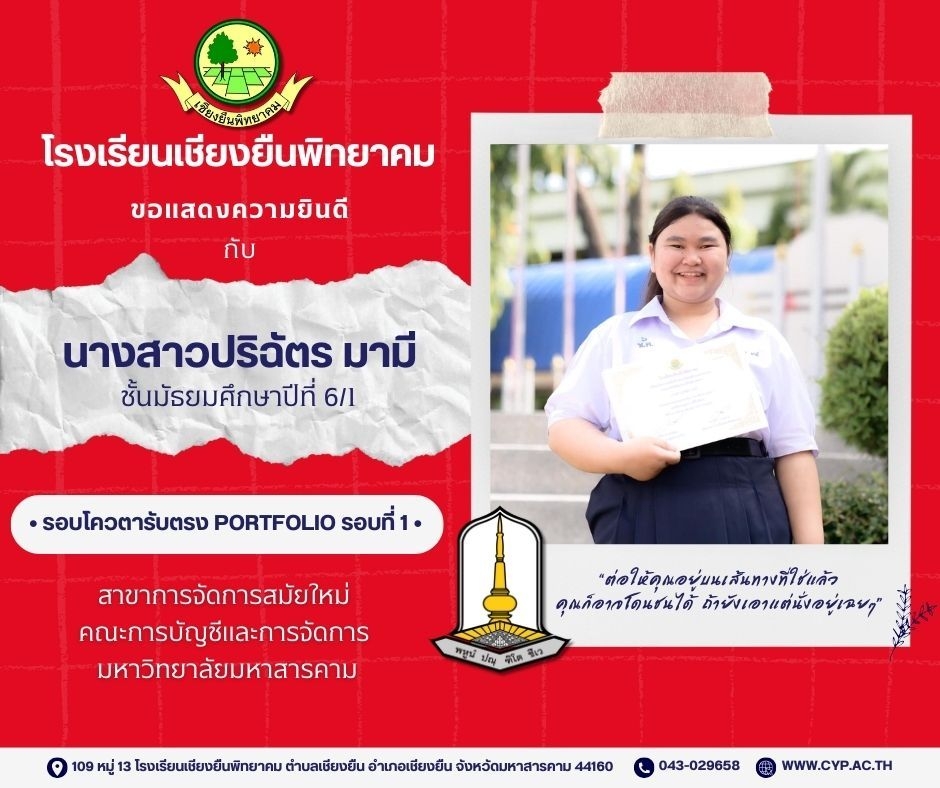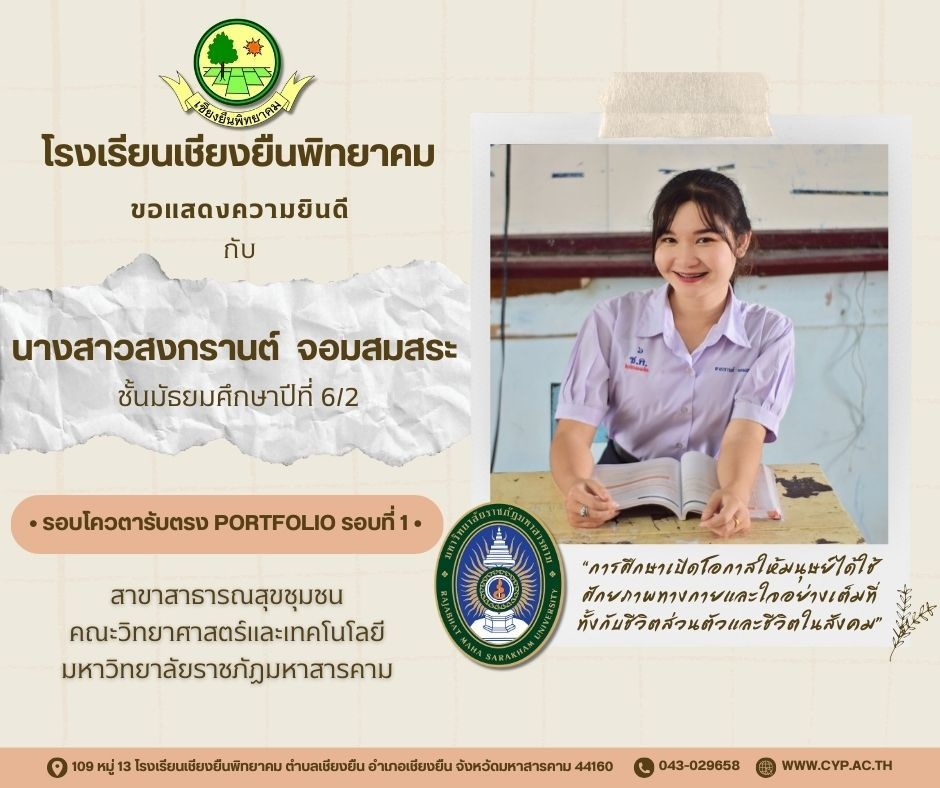 ขอแสดงความยินดี กับนักเรียนชั้นมัธยมศึกษาปีที่ 6 ปีการศึกษา 2566 ที่ผ่านการคัดเลือกเข้าศึกษาต่อในระดับอุดมศึกษา Admin 03/12/2023 ข่าวประชาสัมพันธ์ Leave a comment 221 Views Related Articles ตรวจรับอุปกรณ์ดิจิทัล (IPAD FOR EDUCATION) ตามโครงการส่งเสริมการเรียนรู้ขั้นพื้นฐานทุกที่ทุกเวลา (ANYWHERE ANYTIME) 4 สัปดาห์ ago นายอดุลย์ ภูปลื้ม ผอ.สพม.มหาสารคาม ลงพื้นที่ตรวจเยี่ยมสนามสอบ O-NET ชั้นมัธยมศึกษาปีที่ 3 ประจำปีการศึกษา 2568 (Digital Testing) 05/02/2026 กิจกรรมแนะแนวการศึกษาต่อและอาชีพ ประจำปีการศึกษา 2568 23/01/2026