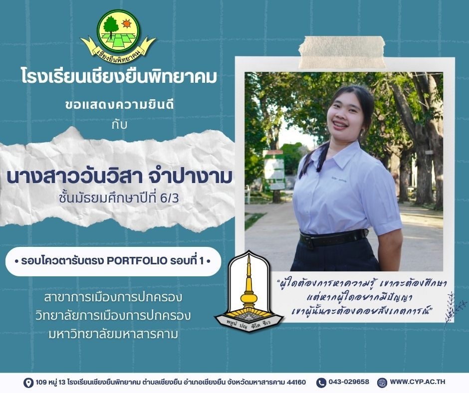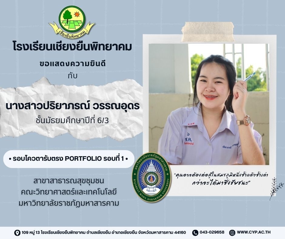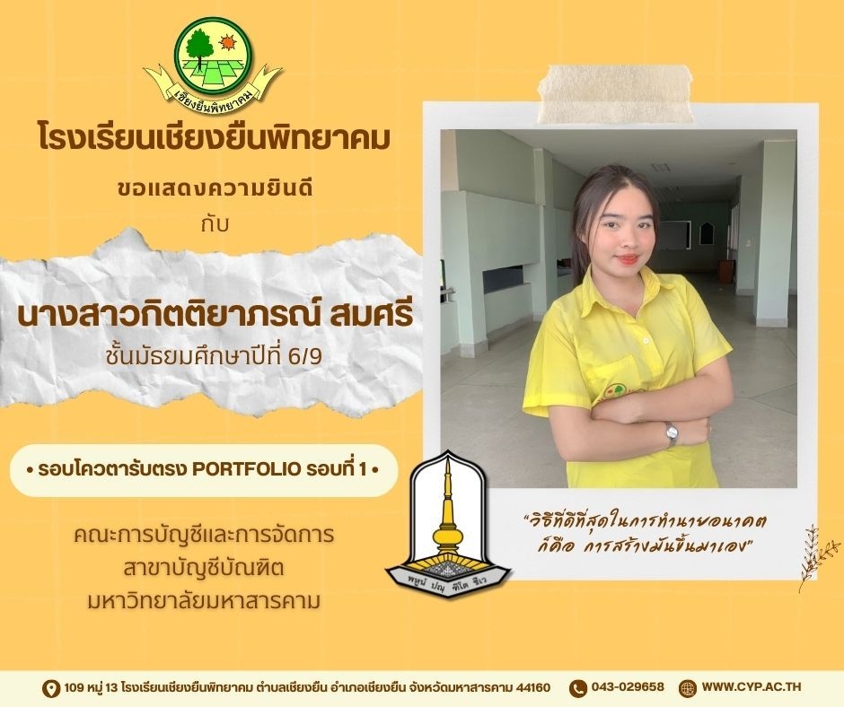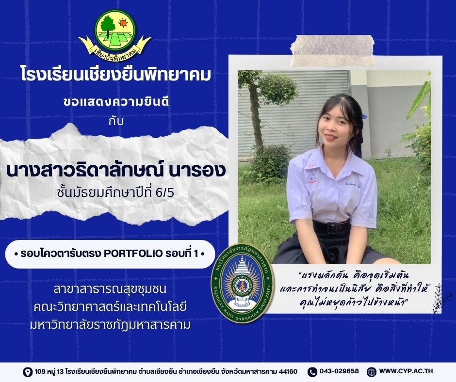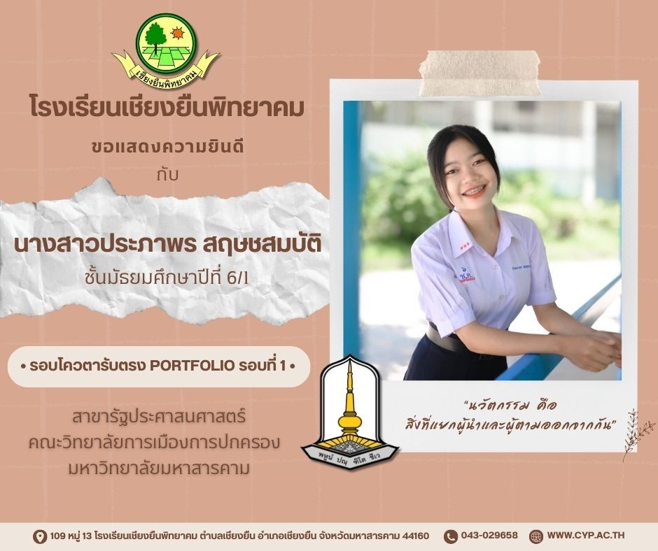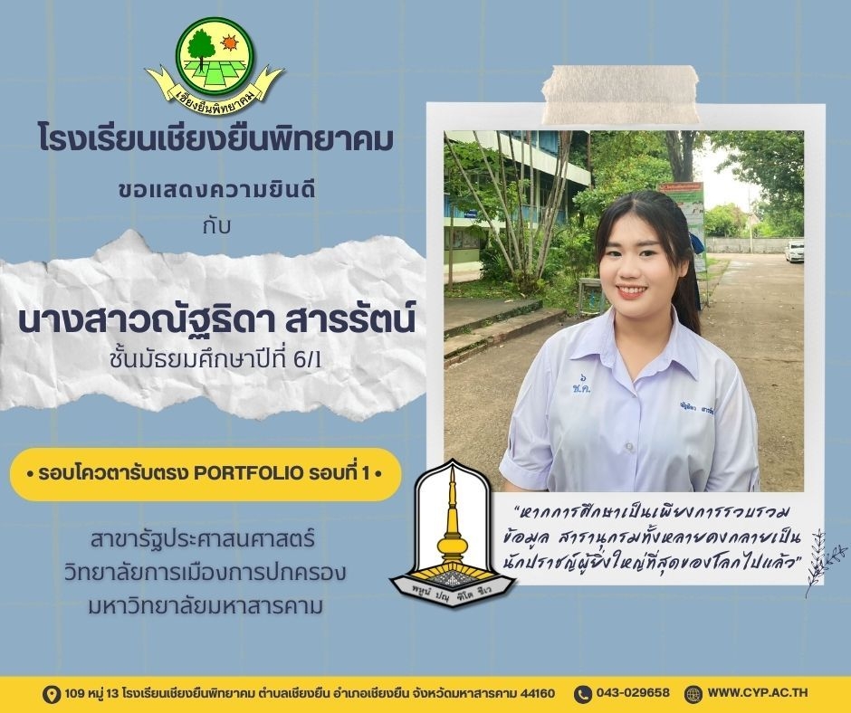 ขอแสดงความยินดี กับนักเรียนชั้นมัธยมศึกษาปีที่ 6 ปีการศึกษา 2566 ที่ผ่านการคัดเลือกเข้าศึกษาต่อในระดับอุดมศึกษา Admin 03/12/2023 ข่าวประชาสัมพันธ์ Leave a comment 221 Views Related Articles ตรวจรับอุปกรณ์ดิจิทัล (IPAD FOR EDUCATION) ตามโครงการส่งเสริมการเรียนรู้ขั้นพื้นฐานทุกที่ทุกเวลา (ANYWHERE ANYTIME) 4 สัปดาห์ ago นายอดุลย์ ภูปลื้ม ผอ.สพม.มหาสารคาม ลงพื้นที่ตรวจเยี่ยมสนามสอบ O-NET ชั้นมัธยมศึกษาปีที่ 3 ประจำปีการศึกษา 2568 (Digital Testing) 05/02/2026 กิจกรรมแนะแนวการศึกษาต่อและอาชีพ ประจำปีการศึกษา 2568 23/01/2026
