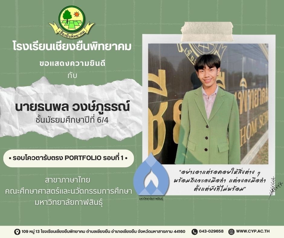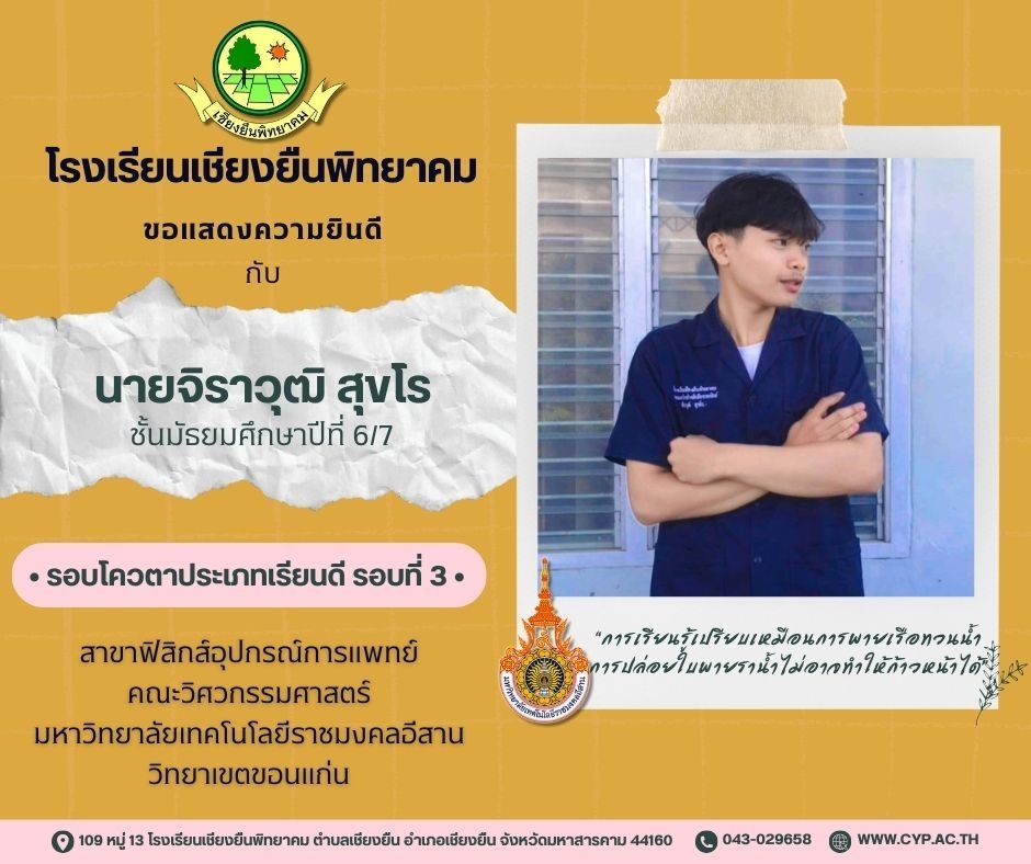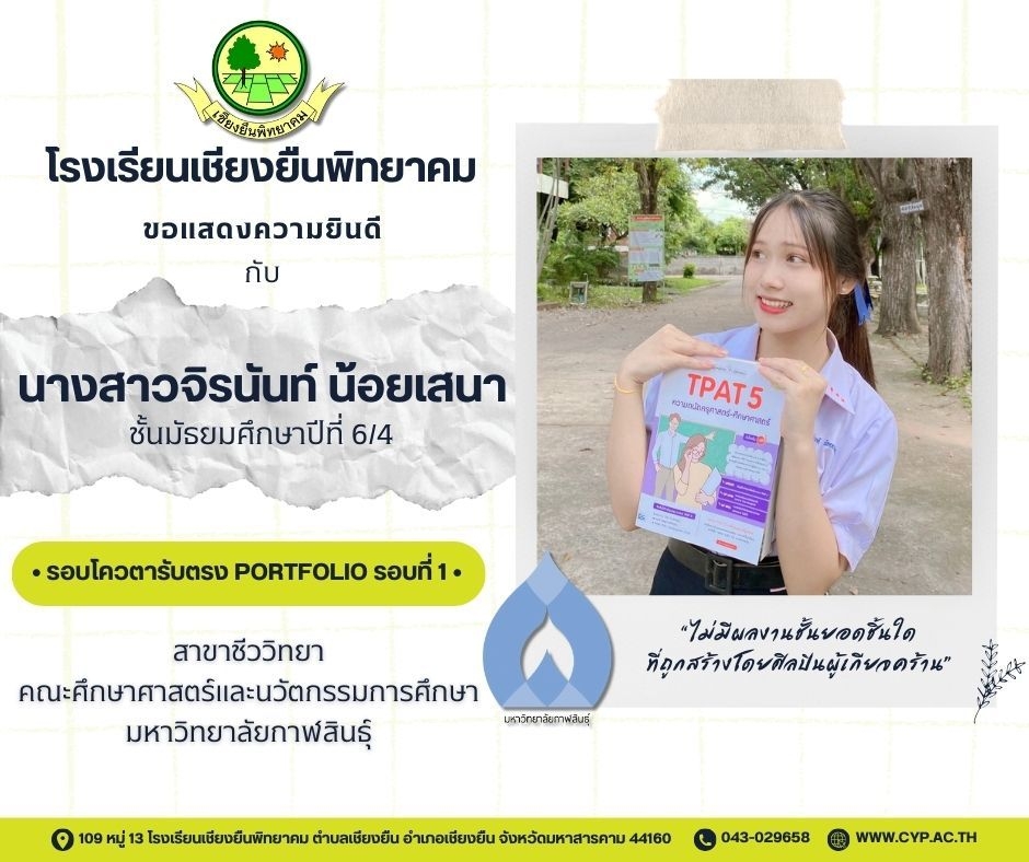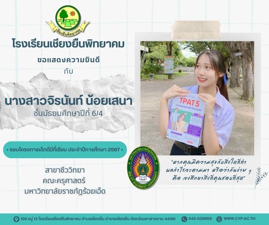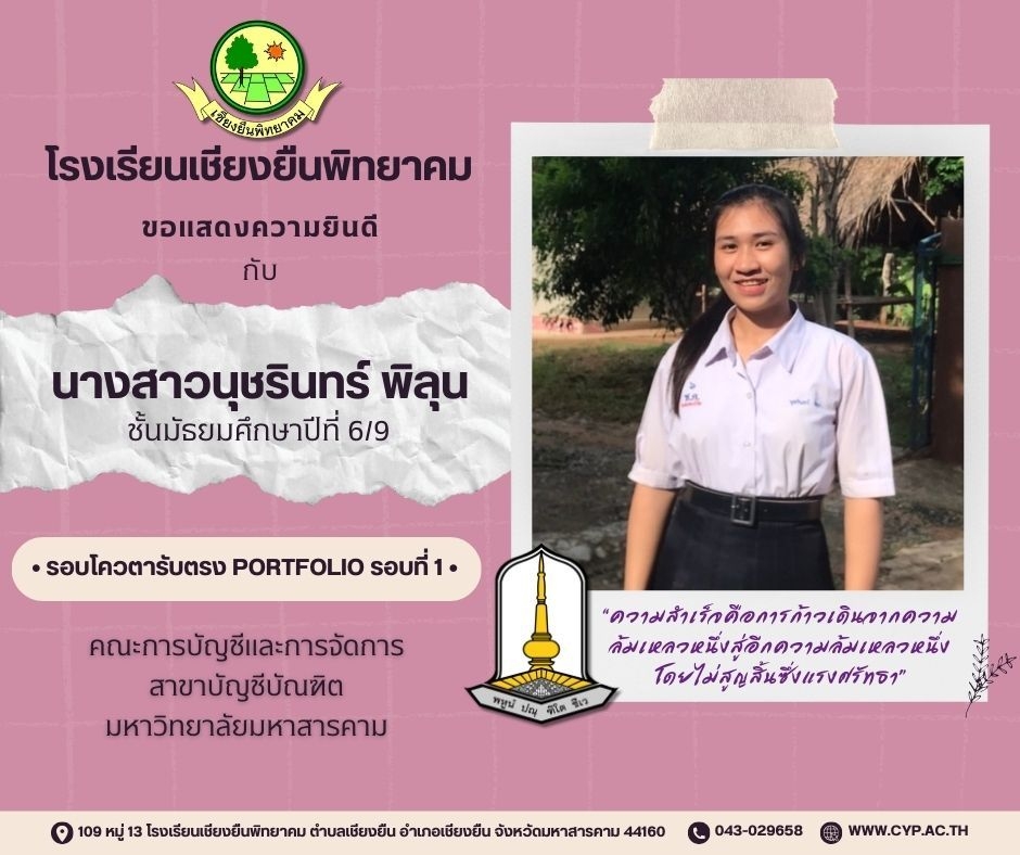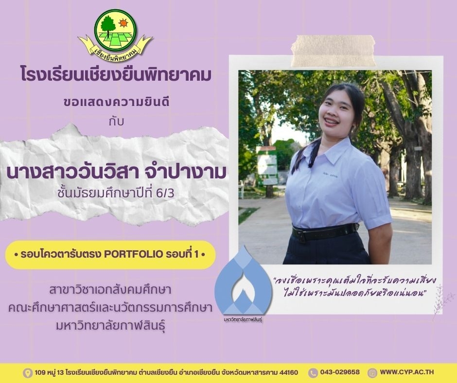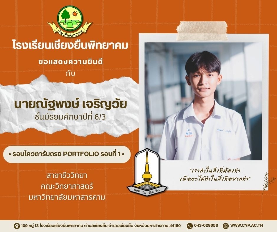 ขอแสดงความยินดี กับนักเรียนชั้นมัธยมศึกษาปีที่ 6 ปีการศึกษา 2566 ที่ผ่านการคัดเลือกเข้าศึกษาต่อในระดับอุดมศึกษา Admin 03/12/2023 ข่าวประชาสัมพันธ์ Leave a comment 221 Views Related Articles ตรวจรับอุปกรณ์ดิจิทัล (IPAD FOR EDUCATION) ตามโครงการส่งเสริมการเรียนรู้ขั้นพื้นฐานทุกที่ทุกเวลา (ANYWHERE ANYTIME) 4 สัปดาห์ ago นายอดุลย์ ภูปลื้ม ผอ.สพม.มหาสารคาม ลงพื้นที่ตรวจเยี่ยมสนามสอบ O-NET ชั้นมัธยมศึกษาปีที่ 3 ประจำปีการศึกษา 2568 (Digital Testing) 05/02/2026 กิจกรรมแนะแนวการศึกษาต่อและอาชีพ ประจำปีการศึกษา 2568 23/01/2026