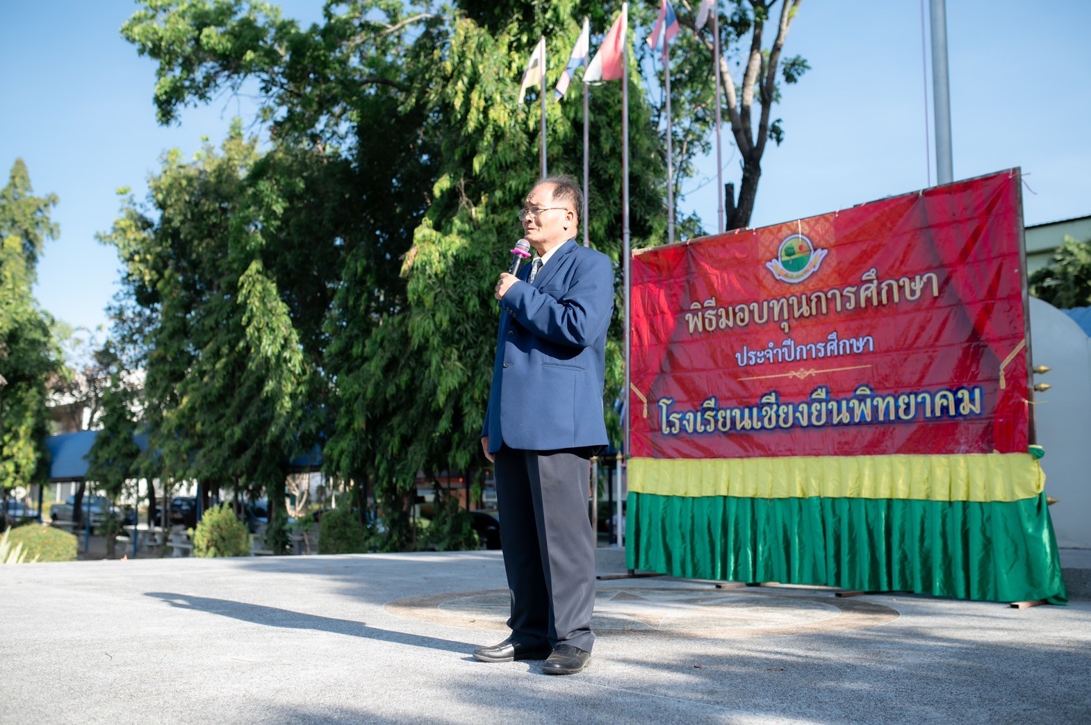 วันพฤหัสบดีที่ 7 ธันวาคม พ.ศ.2566 ดร.ชัดสกร พิกุลทอง ผู้อำนวยการโรงเรียนเชียงยืนพิทยาคม มอบหมายให้ นายสมบัติ เอื้อกิจ และ นายศิวาวุธ ชินโคตร รองผู้อำนวยการโรงเรียน ” มอบทุนการศึกษา ” แก่นักเรียนที่มีความประพฤติดี มารยาทดี แต่ขาดแคลนทุนทรัพย์ ประจำปีการศึกษา 2566 ครั้งที่ 2 เพื่อส่งเสริมให้กำลับใจนักเรียนที่ตั้งใจเรียน มีผลการเรียนอยู่ในระดับแนวหน้า ช่วยเหลือนักเรียนที่ประพฤติดี ขาดแคลนทุนทรัพย์ ได้เข้าถึงโอกาสทางการศึกษาและสร้างแรงบันดาลใจให้นักเรียนทุกคนได้ตั้งใจศึกษาเล่าเรียน มีความรู้คู่คุณธรรม ณ บริเวณพิธีหน้าเสาธง โรงเรียนเชียงยืนพิทยาคม