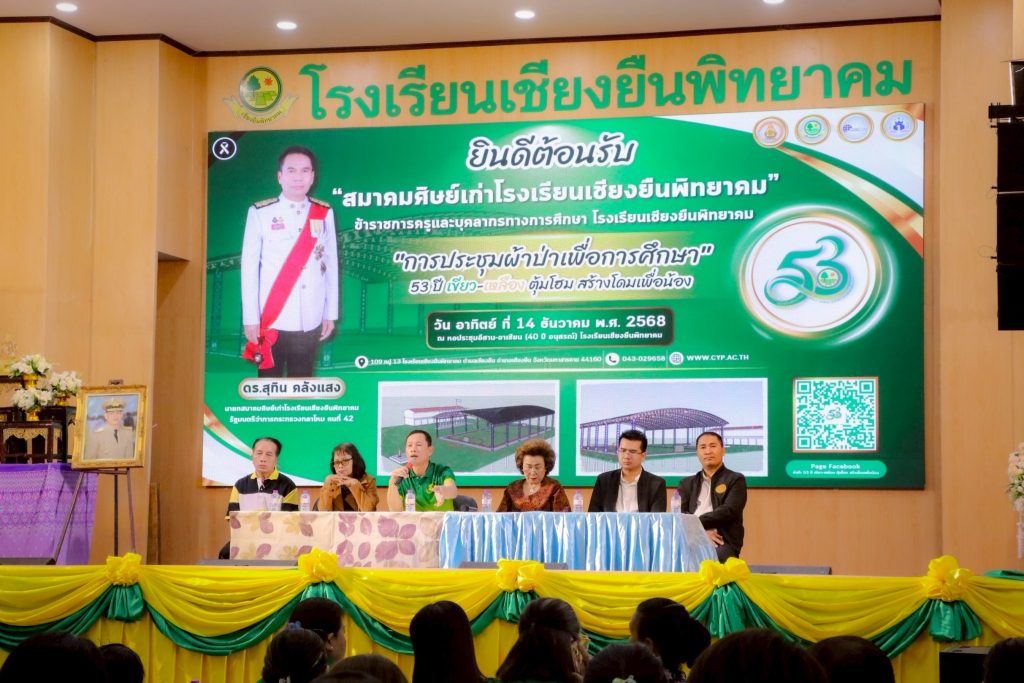 วันเสาร์ที่ 13 ธันวาคม 2568 ดร.สุทิน คลังแสง นายกสมาคมศิษย์เก่าโรงเรียนเชียงยืนพิทยาคม รัฐมนตรีว่าการกระทรวงกลาโหม คนที่ 42 เป็นประธานในการประชุมตัวแทนรุ่นศิษย์เก่า เพื่อเตรียมความพร้อมในการจัดงานผ้าป่าเพื่อการศึกษา 53 ปี “เขียว-เหลือง ตุ้มโฮม สร้างโดมเพื่อน้อง”ณ หอประชุมอิสาน-อาเซียน (40 ปีอนุสรณ์) โรงเรียนเชียงยืนพิทยาคม อำเภอเชียงยืน จังหวัดมหาสารคาม