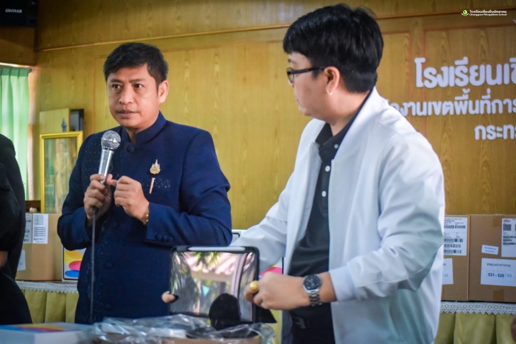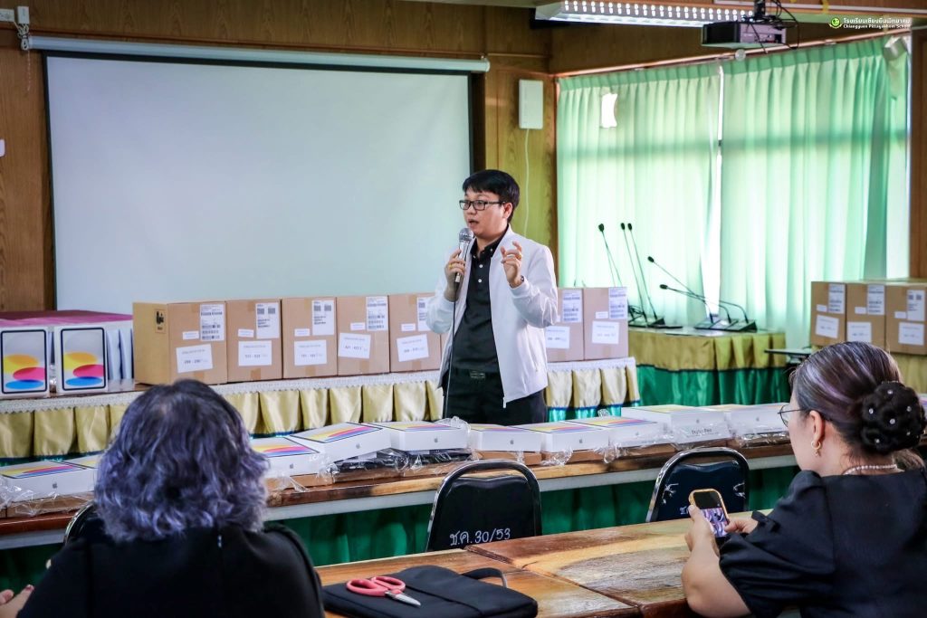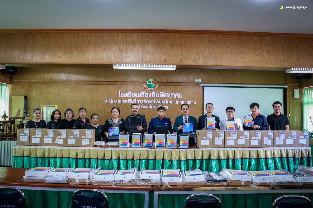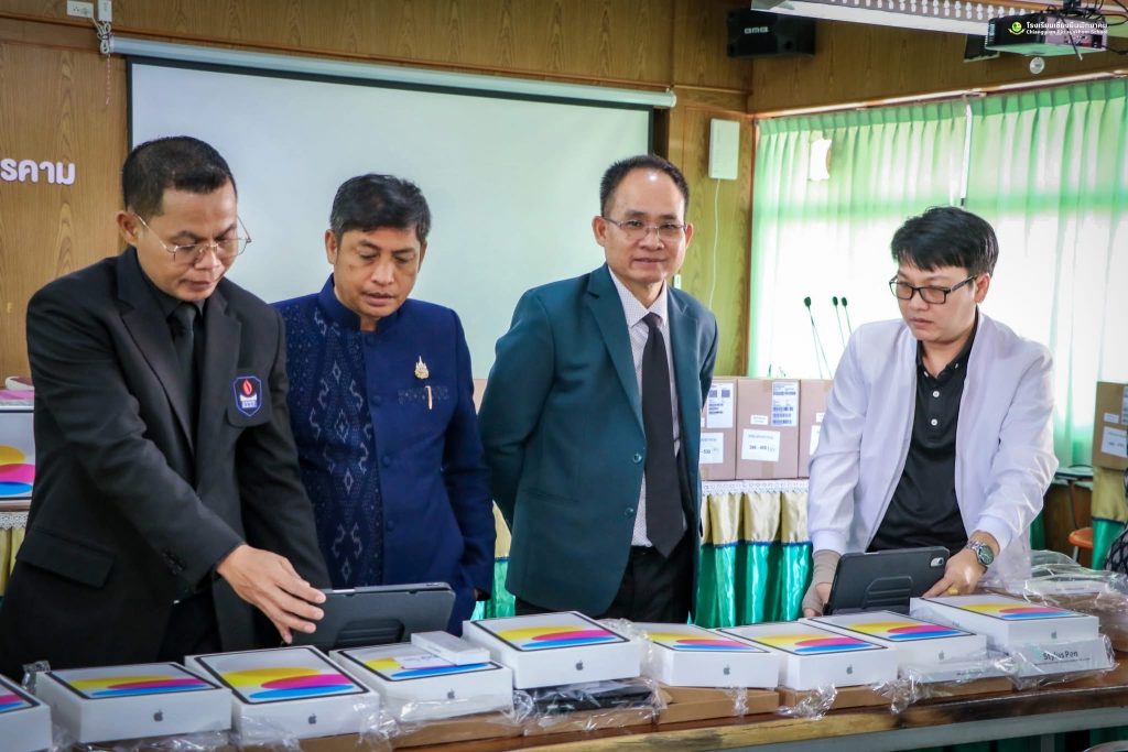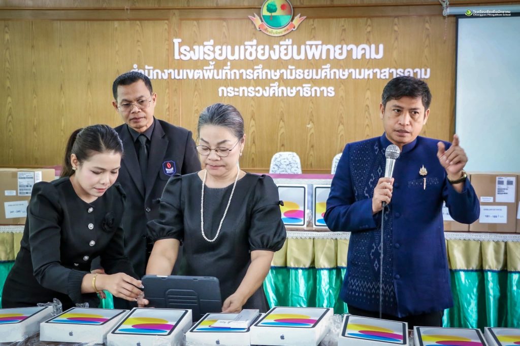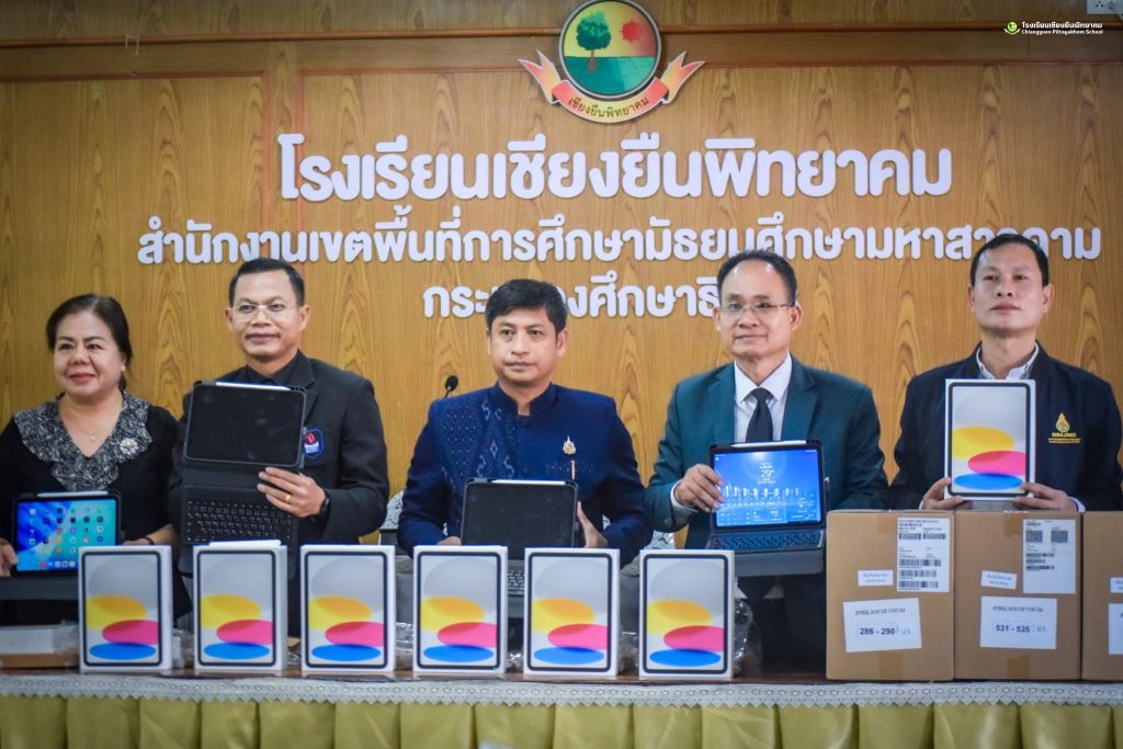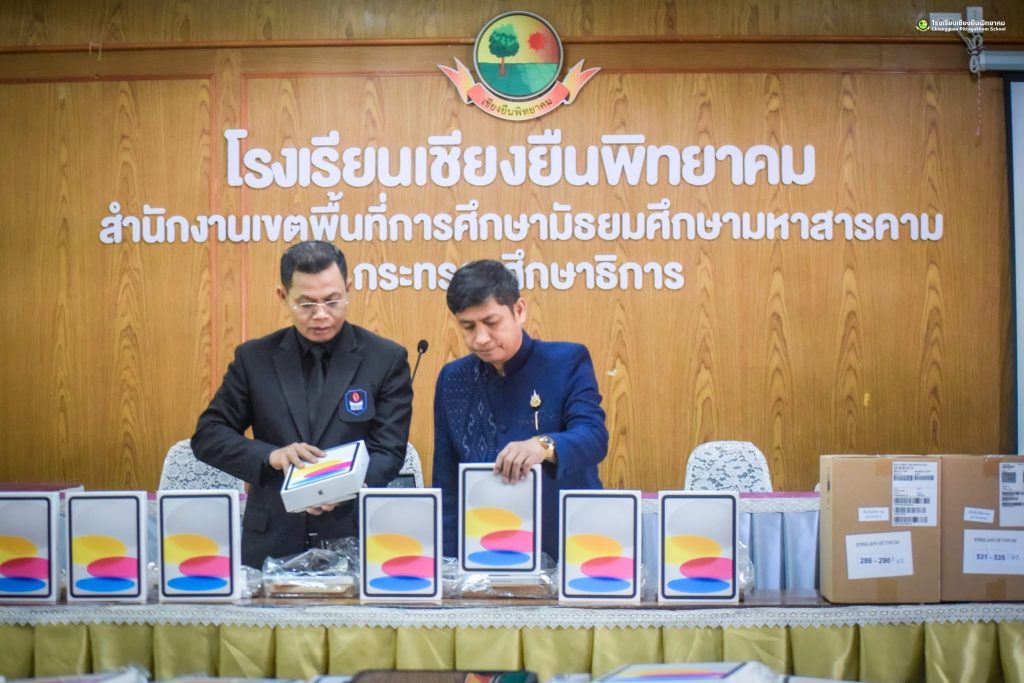 วันศุกร์ที่ 20 กุมภาพันธ์ 2569 ดร.ชัดสกร พิกุลทอง ผู้อำนวยการโรงเรียน พร้อมด้วยคณะผู้บริหาร กรรมการดำเนินงานฯ ดำเนินการตรวจนับอุปกรณ์ดิจิทัล iPad Gen 11 (A16) เพื่อการศึกษา ภายใต้ใครงการส่งเสริบการเรียบรู้ขั้นพื้นฐานทุกที่ทุกเวลา (Anywhere Anytime) โดย นายดุลย์ ภูปลื้ม ผู้อำนวยการสำนักงานเขตพื้นที่การศึกษามัธยมศึกษามหาสารคาม มอบหมายให้ ดร.ชัดสกร พิกุลทอง ผู้อำนวยการไรงเรียนเชียงยืนพิทยาคม นายภูวดล ภูสิม ผู้อำนวยการโรงเรียนชื่นชมพิทยาคาร ดร.เชิดชัย พลกุล ผู้อำนวยการโรงเรียนกันทรวิชัย นายวนัส พรมสว่าง ผู้อำนวยการโรงเรียนโกสุมวิทยาสรรค์ เป็นคณะกรรมการตรวจรับพัสดุ ณ ห้องประชุมดงทอง โรงเรียนเชียงยืนพิทยาคม อำเภอเชียงยืน จังหวัดมหาสารคาม
